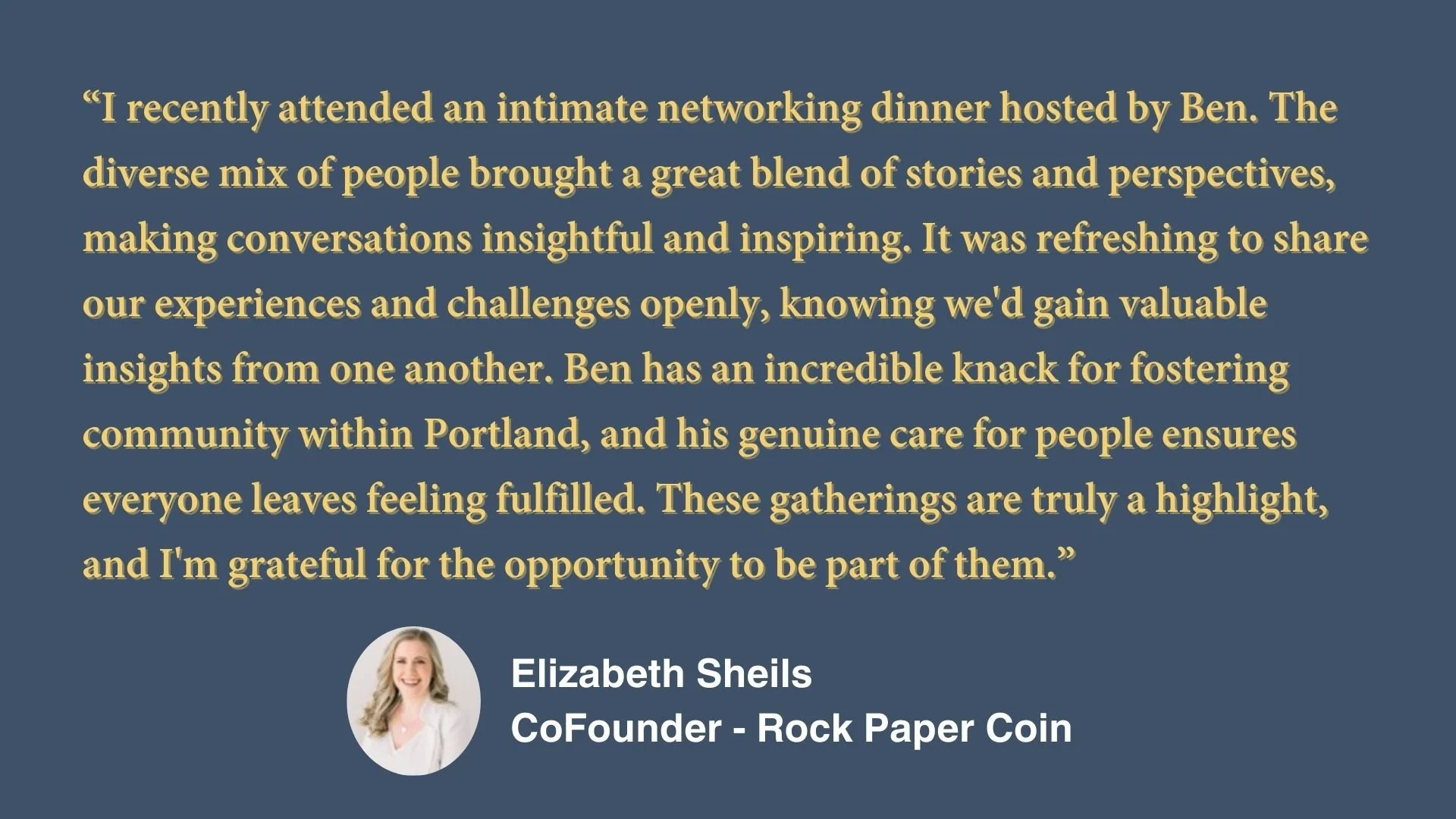 Today, we’ve grown beyond just the small dinner evenings to host a variety of events, but our focus on members-only, small-format gatherings remains at the core of what we do. We’re all about creating spaces where you can truly connect with others, exchange ideas, and find support in your journey.